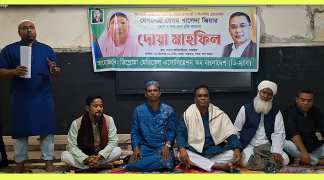 ডিপ্লোমা মেডিকেল এসোসিয়েশন অব বাংলাদেশের (ডি-ম্যাব) উদ্যোগে বিএনপি চেয়ারপারসন ও সাবেক প্রধানমন্ত্রী বেগম খালেদা জিয়ার সুস্থতা কামনায় দোয়া মাহফিল অনুষ্ঠিত হয়েছে। শুক্রবার বিকালে টাঙ্গাইল সরকারি ম্যাটসের অডিটোরিয়ামে এই দোয়া মাহফিল আয়োজন করা হয়।