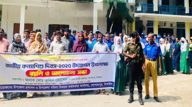 “আমি কন্যা শিশু স্বপ্ন গড়ি, সাহসে লড়ি, দেশের কল্যাণে কাজ করি”—এই প্রতিপাদ্যকে সামনে রেখে টাঙ্গাইলের গোপালপুরে জাতীয় কন্যাশিশু দিবস উদযাপন করা হয়েছে। বুধবার (৮ অক্টোবর) সকালে উপজেলা প্রশাসন ও মহিলা বিষয়ক কর্মকর্তার কার্যালয়ের উদ্যোগে একটি বর্ণাঢ্য র্যালি বের করা হয়। র্যালিটি উপজেলা চত্বর প্রদক্ষিণ করে উপজেলা পরিষদ মিলনায়তনে আলোচনা সভায় মিলিত হয়।