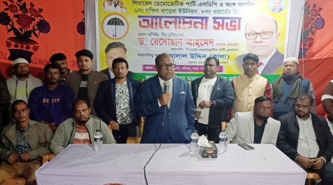 লিবারেল ডেমোক্র্যাটিক পার্টির (এলডিপি) মহাসচিব, সাবেক প্রতিমন্ত্রী ও বীর মুক্তিযোদ্ধা ড. রেদোয়ান আহমেদ বলেছেন, স্বৈরাচারবিরোধী আন্দোলন ও সংগ্রামে বিএনপির সঙ্গে এলডিপি যুগপৎভাবে অংশগ্রহণ করেছে এবং এখনও সহযোগিতা অব্যাহত রয়েছে। তিনি নিশ্চিত করেছেন, কুমিল্লা-৭ (চান্দিনা) আসনে এলডিপির জোট প্রার্থী হিসেবে নির্বাচনে প্রতিদ্বন্দ্বিতা করবেন।