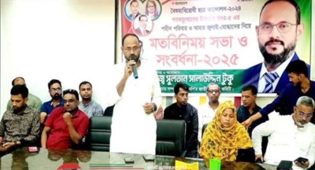 টাঙ্গাইলে বৈষম্যবিরোধী ছাত্র আন্দোলন ও গণঅভ্যুত্থানে শহীদ পরিবার এবং আহত জুলাই যোদ্ধাদের নিয়ে মতবিনিময় সভা করেছেন কেন্দ্রীয় বিএনপির প্রচার সম্পাদক ও টাঙ্গাইল-৫ (সদর) আসনের মনোনয়নপ্রত্যাশী সুলতান সালাউদ্দিন টুকু।