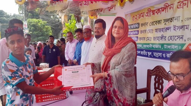 টাঙ্গাইলে সম্পন্ন হয়েছে ৫২তম গ্রীষ্মকালীন ক্রীড়া প্রতিযোগিতা। রোববার (১২ অক্টোবর) সকালে টাঙ্গাইল পৌর শহরের ছয়আনী পুকুর পাড়ে টাঙ্গাইল বালিকা উচ্চ বিদ্যালয়ের সামনে বাংলাদেশ জাতীয় স্কুল, মাদ্রাসা ও কারিগরি ক্রীড়া সমিতি জেলা শাখার উদ্যোগে সাঁতার ও দাবা প্রতিযোগিতা অনুষ্ঠিত হয়।