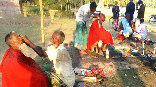টাঙ্গাইলে হারিয়ে যাচ্ছে পিঁড়িতে বসে চুল-দাঁড়ি কাটা নরসুন্দর