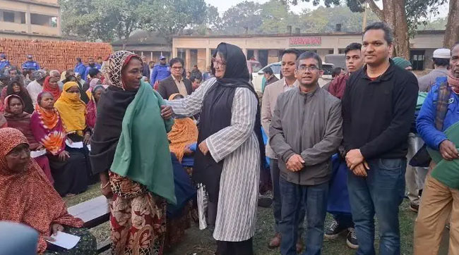 টাঙ্গাইলে তীব্র শীতে অসহায় ও ছিন্নমূল মানুষের পাশে দাঁড়িয়েছে জেলা প্রশাসন। শনিবার (২৭ ডিসেম্বর) বিকেলে টাঙ্গাইল সদর উপজেলার পোড়াবাড়ী ইউনিয়নে পাঁচ শতাধিক শীতার্ত মানুষের মাঝে শীতবস্ত্র (কম্বল) বিতরণ করা হয়। পোড়াবাড়ী সরকারি বিদ্যালয় মাঠে আয়োজিত এ কার্যক্রমে কম্বল বিতরণ করেন টাঙ্গাইলের জেলা প্রশাসক শরীফা হক।