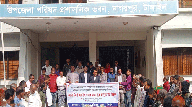টাঙ্গাইলের নাগরপুরে ২০২৫-২৬ অর্থবছরের প্রণোদনা কর্মসূচির আওতায় ক্ষুদ্র ও প্রান্তিক কৃষকদের মাঝে বিনামূল্যে বোরো উফশী ও বোরো হাইব্রিড ধানের বীজ ও সার বিতরণ করা হয়েছে।