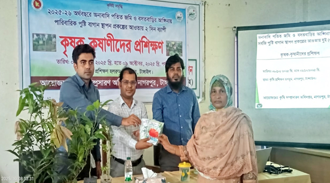 টাঙ্গাইলের নাগরপুরে “অনাবাদি পতিত জমি ও বসতবাড়ির আঙিনায় পারিবারিক পুষ্টি বাগান” প্রকল্পের আওতায় দুই দিনব্যাপী কৃষান-কৃষানি প্রশিক্ষণ অনুষ্ঠিত হয়েছে।