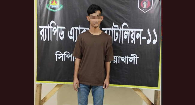 গ্রেফতারকৃত শাফায়েত হোসেন সৈকত (২০) উপজেলার একলাশপুর ইউনিয়নের ২ নম্বর ওয়ার্ডের পূর্বএকলাশপুর গ্রামের শহীদুল্লাহর ছেলে। গতকাল রাত পৌনে ১২টার দিকে উপজেলার বেগমগঞ্জ বাস স্ট্যান্ড এলাকা থেকে তাকে গ্রেপ্তার করা হয়।