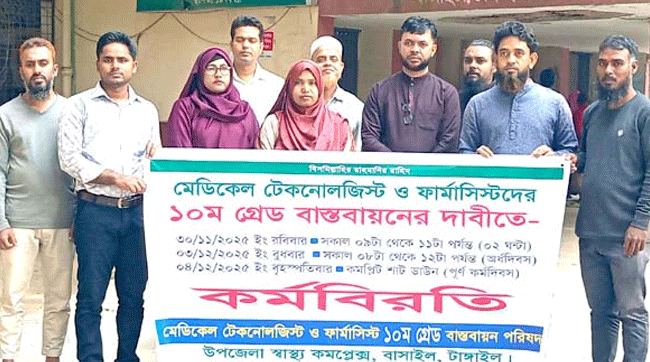 বাসাইলে মেডিকেল টেকনোলজিস্ট ও ফার্মাসিস্টদের কর্মবিরতি