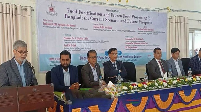 টাঙ্গাইলের মাওলানা ভাসানী বিজ্ঞান ও প্রযুক্তি বিশ্ববিদ্যালয়ে (মাভাবিপ্রবি) ফুড টেকনোলজি এন্ড নিউট্রিশনাল সায়েন্স বিভাগের উদ্যোগে ‘ফুড ফর্টিফিকেশন এন্ড ফ্রোজেন ফুড প্রসেসিং ইন বাংলাদেশ: কারেন্ট সিনারিও এন্ড ফিউচার প্রসপেক্টস’ শীর্ষক এক সেমিনার অনুষ্ঠিত হয়েছে।