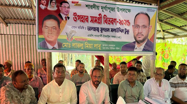 শারদীয় দুর্গাপূজায় শুভেচ্ছা বিনিময় ও উপহার বিতরণ করলেন : টুকু