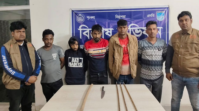 রবিবার (২১ ডিসেম্বর) রাত ১২টার দিকে সাভারে ঢাকা-আরিচা মহাসড়কের পাকিজা এলাকায় অভিযান চালিয়ে তাদেরকে গ্রেপ্তার করেছে ঢাকা জেলা উত্তর গোয়েন্দা পুলিশ ডিবি। গ্রেপ্তাররা হলেন- সিরাজগঞ্জ জেলার শাহাজাদপুর পুতাজিয়া গ্রামের মো. আনিস শেখের ছেলে মো. রাজিব (৩০), গোপালগঞ্জ জেলার সদর থানার কংশুর গ্রামের মৃত মান্নান মিয়ার ছেলে মো. রবিউল মিয়া (৩৫), হবিগঞ্জ জেলার নবীগঞ্জ থানার বনগাঁও গ্রামের মো. জালাল মিয়ার ছেলে মো. পাভেল (২৮), মানিকগঞ্জ জেলার সদর থানার নারী খুলি গ্রামের ঈমান বেপারীর ছেলে মো. আবুল বাশার (৩৬), গাইবান্ধা জেলার পলাশবাড়ী থানার জাপর গ্রামের মো. জাহাঙ্গীর আলমের ছেলে মো. মনির হোসেন (২৮)।